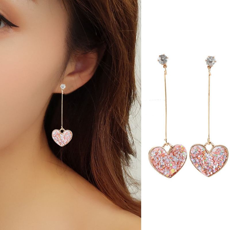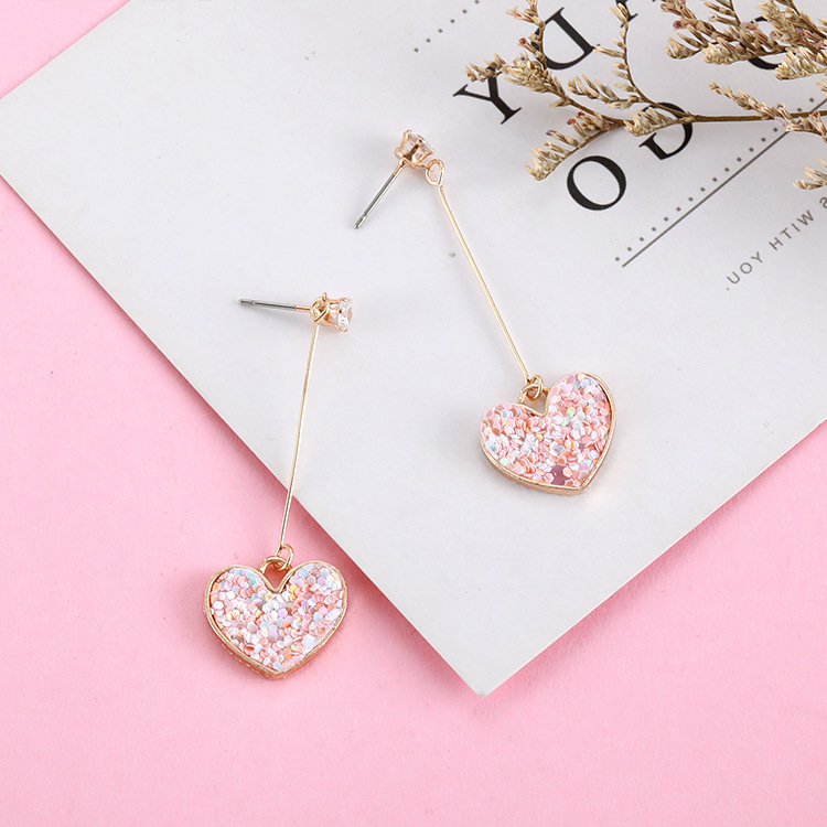 耳元でゆらゆら揺れるハート型が可愛いピアスです。
