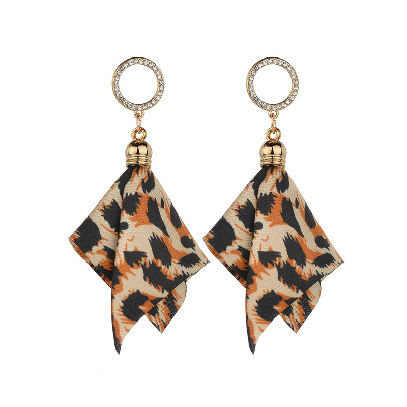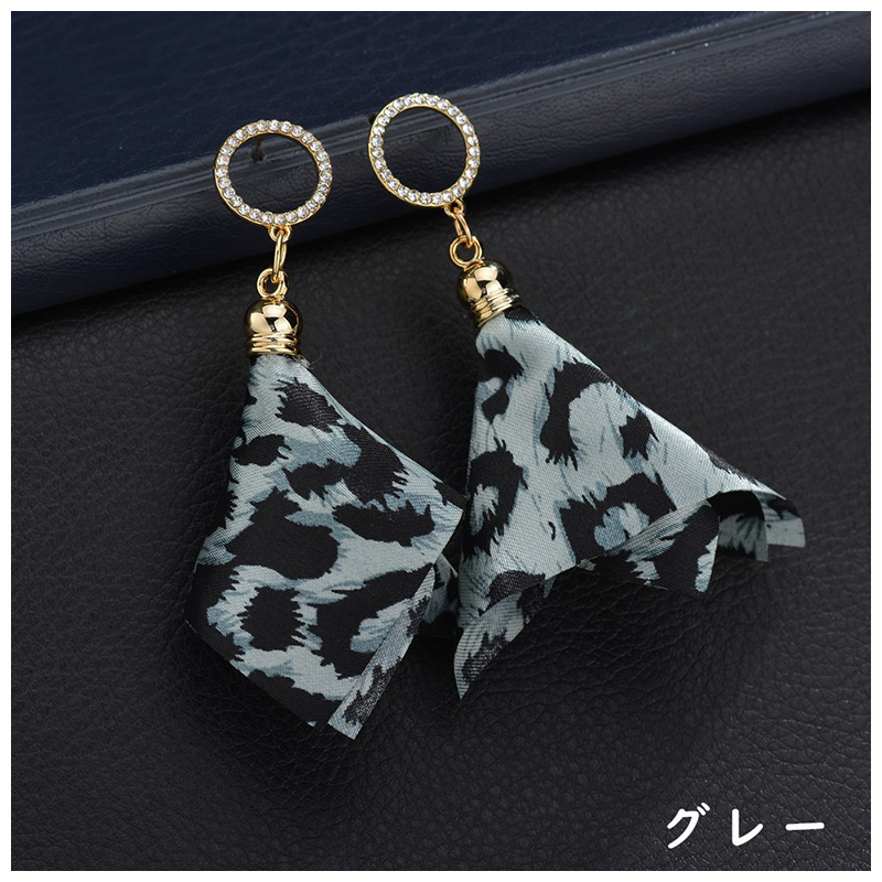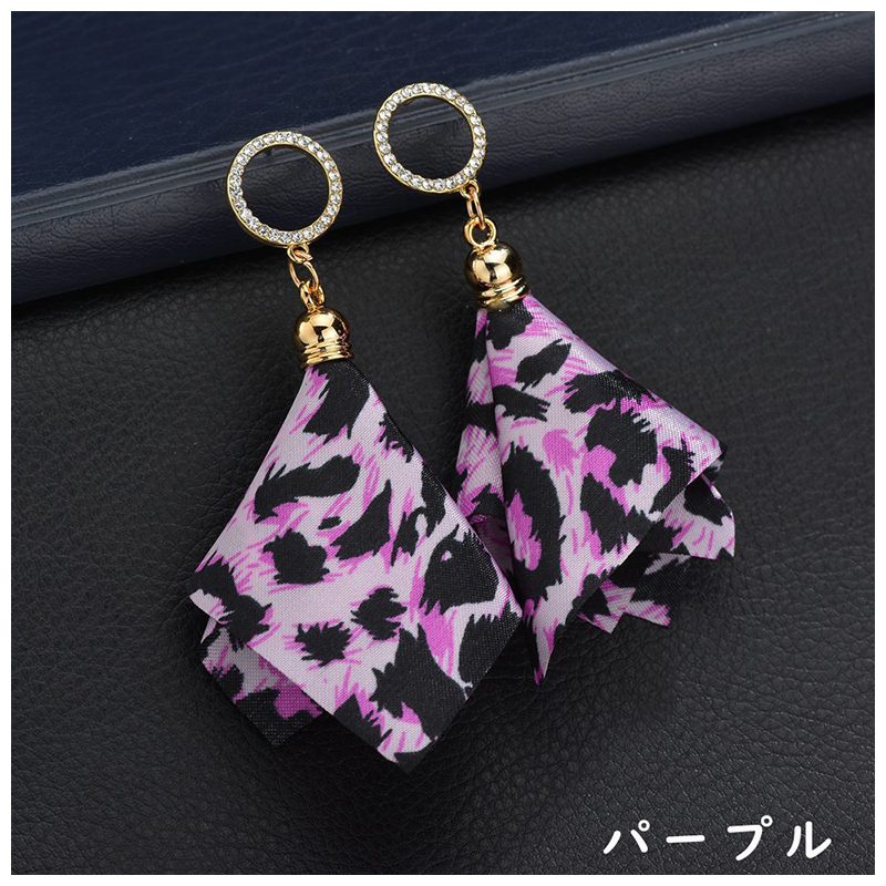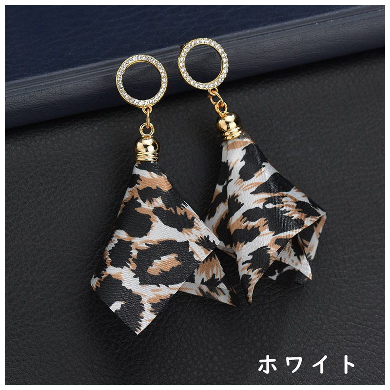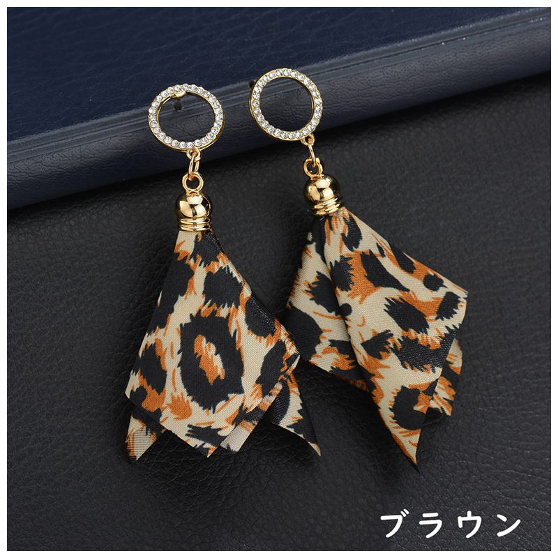 ヒョウ柄のスカーフチャームピアスです。